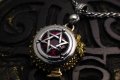 賢者の石をイメージした合成ルビーをヘキサグラムを刻んだケースに納め、 その周りには自らの尾を噛んで飲み込んで環となった蛇 ウロボロスが クルクル回せるように取り付けられています。