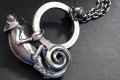 ![]() | 【エボシカメレオン豆知識】 生息地 :アラビア半島南西部 全長 : オス 65cm メス 45cm 和名からもわかるように、特にオスの頭頂部のクレストが非常に発達し、特徴的な形態をしています。さらに背中線と下顎から腹中線のクレストも櫛状から鋸歯状で目立ちます。 オスの婚姻色は薄い緑色で赤褐色から淡褐色の不規則な斑紋が体側に入ります。興奮すると鮮やかな黄色、黒、青色に発色します。 シルバーの「銀カメレオン」、真鍮の「金カメレオン」のどちらかをお選びください。 写真では分かりにくいのですが、光沢を落とした仕上がりになっています。 【 素 材 】 シルバー925 / 真鍮 【 重 量 】 20g 【 寸 法 】 縦40 × 横35 × 厚13 (mm) 【 チ ェ ー ン 】 あずき 線径0.8×幅2.8 (mm) 留め金具 : ロブスタークラスプ 長さ 50/60(cm)よりお選びください。 |